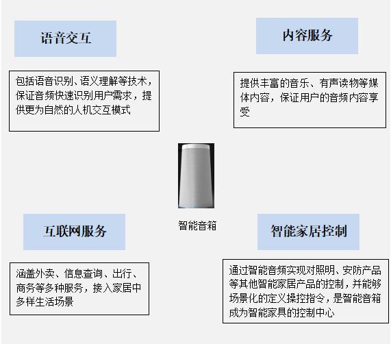 智能音箱是在傳統(tǒng)音箱基礎上增加了智能化功能,這功能體現(xiàn)在兩方面:一是技術上具備WiFi鏈接可語音交互;二是功能上可提供音樂、有聲讀物等內容服務、互聯(lián)網(wǎng)服務以及場景化智能家居控制能力。