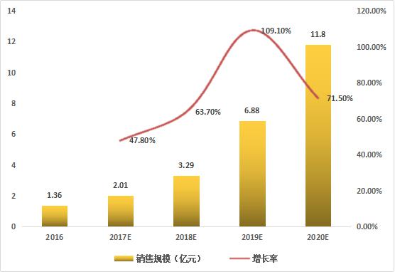 根據(jù)艾媒咨詢數(shù)據(jù)顯示,2016年中國智能音箱銷售規(guī)模為1.36億元,預計2017年將突破兩億,達到2.01億,增長率為47.8%;預計到2020年,智能音箱銷售規(guī)模將超過10億元。目前雖眾多廠商已推出智能音箱產(chǎn)品,但市場總體銷售規(guī)模仍處于較低水平,隨著產(chǎn)品進一步優(yōu)化升級及智能家居的推廣,中國智能音箱消費市場潛力將得到釋放,行業(yè)有望迎來爆發(fā)式增長。