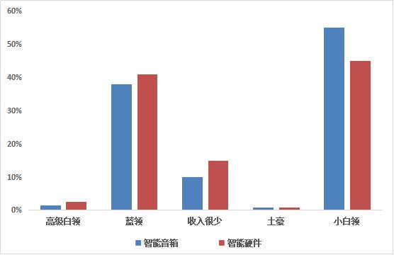 從上述圖表中可以看出,智能音箱用戶以小白領、藍領等一定消費能力的人群為主,智能音箱小白領用戶占比更高。