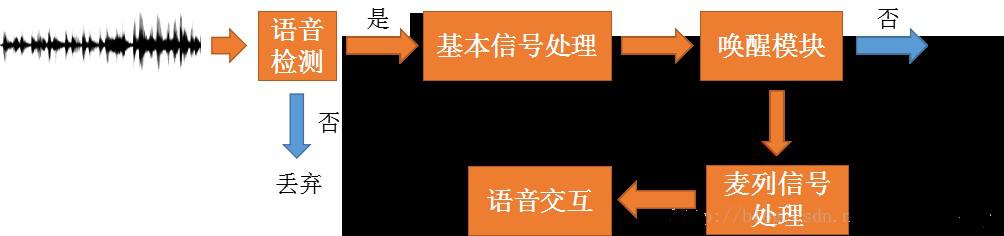 總體而言,音箱工作時,麥列始終處于拾音狀態(tài)(持續(xù)對聲音信號進行采樣、量化)。經(jīng)過基本的信號處理(靜音檢測、降噪等),喚醒模塊會判斷是否出現(xiàn)喚醒詞。如果出現(xiàn)喚醒詞,后續(xù)語音會進行更復雜的語音信號處理,(理想情況下)得到干凈的語音信號,開始真正的語音交互流程。