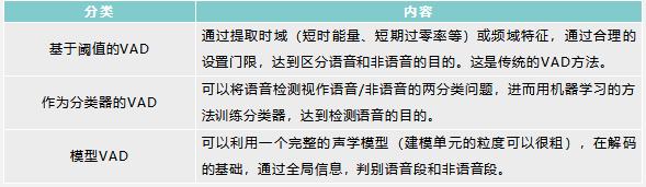 VAD 算法可以粗略的分為三類:基于閾值的VAD、作為分類器的VAD和模型VAD。