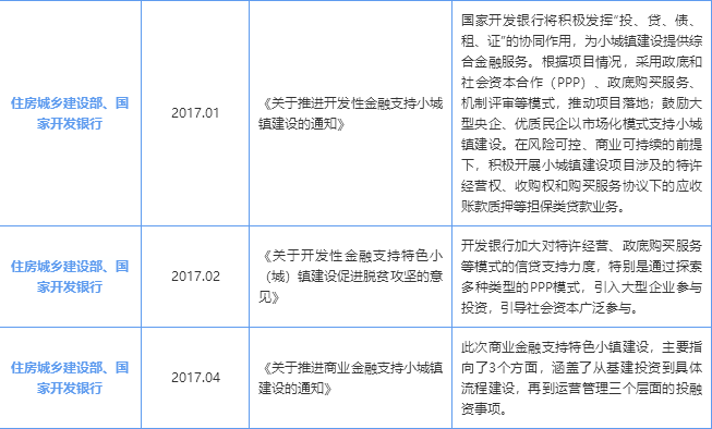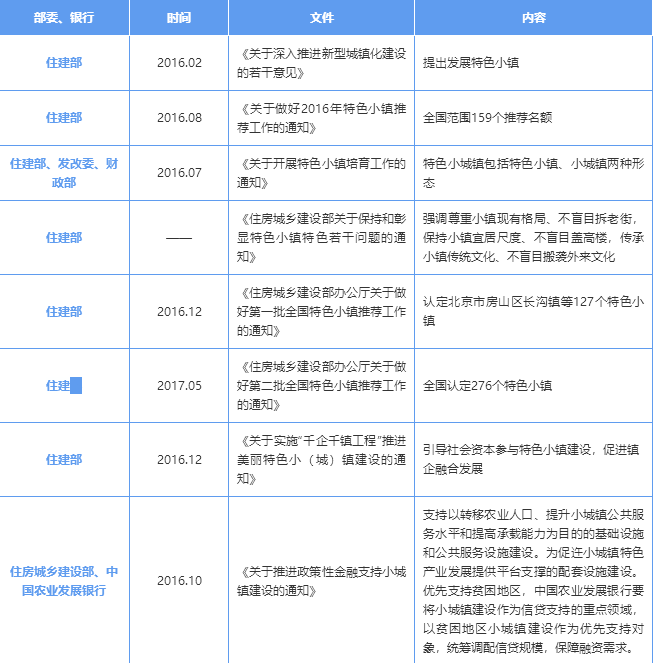 2016年以來,國家發(fā)改委、住建部聯(lián)合多個銀行出臺多項支持特色小鎮(zhèn)建設的政策文件及金融支持文件。