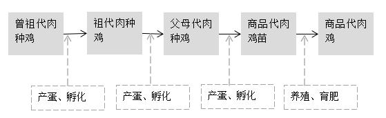 我國(guó)白羽肉雞祖代種雞養(yǎng)殖企業(yè)主要從國(guó)外引進(jìn)祖代肉種雞苗,繁育父母代肉種雞苗出售給父母代肉種雞養(yǎng)殖企業(yè),父母代肉種雞產(chǎn)蛋孵化出商品代雛雞銷售給代養(yǎng)戶,商品代肉雞經(jīng)屠宰加工后成為雞肉產(chǎn)品。白羽肉雞的目標(biāo)客戶主要是肯德基、麥當(dāng)勞等快餐消費(fèi)及分割產(chǎn)品出口。