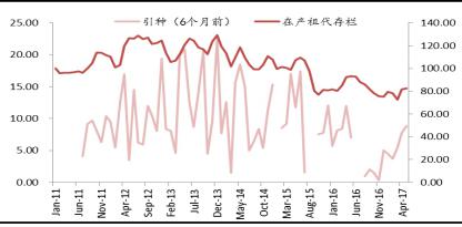 2、中期:緊盯在產(chǎn)父母代存欄變化趨勢(shì)