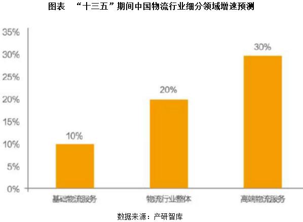 預(yù)計(jì)“十三五”期間中國第三產(chǎn)業(yè)年復(fù)合增長率將達(dá)到16%。其中,基礎(chǔ)物流服務(wù)(倉儲(chǔ)和運(yùn)輸)增速將僅能達(dá)到10%左右的水平。