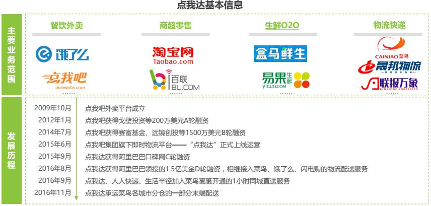 即時(shí)物流平臺(tái)點(diǎn)我達(dá)脫胎于外賣平臺(tái)點(diǎn)我吧,憑借出色的運(yùn)營和調(diào)度能力快速發(fā)展。2016年7月,獲得阿里領(lǐng)投的1.5億美金D輪融資,并接入菜鳥網(wǎng)絡(luò)城市配送體系,成為阿里物流布局戰(zhàn)略重點(diǎn)。相較于其他即時(shí)物流平臺(tái),點(diǎn)我達(dá)擁有淘系電商龐大的資源背景作為支撐,訂單來源除O2O平臺(tái)之外還包括物流、電商等,在競爭中占據(jù)絕對(duì)優(yōu)勢。