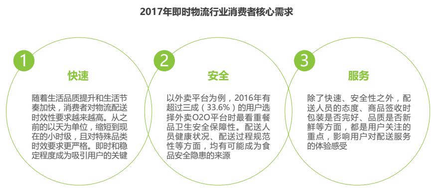消費(fèi)者對(duì)物流配送的要求,在快速、安全、服務(wù)三方面均較以往更加嚴(yán)格。不僅希望能夠即時(shí)發(fā)貨、即時(shí)收貨,提高便利性,同時(shí)也更為強(qiáng)調(diào)配送安全保障。另外,消費(fèi)者對(duì)服務(wù)的考核標(biāo)準(zhǔn)也在不斷細(xì)化和擴(kuò)展,配送人員態(tài)度、商品品質(zhì)是否新鮮等也將成為考核點(diǎn)。