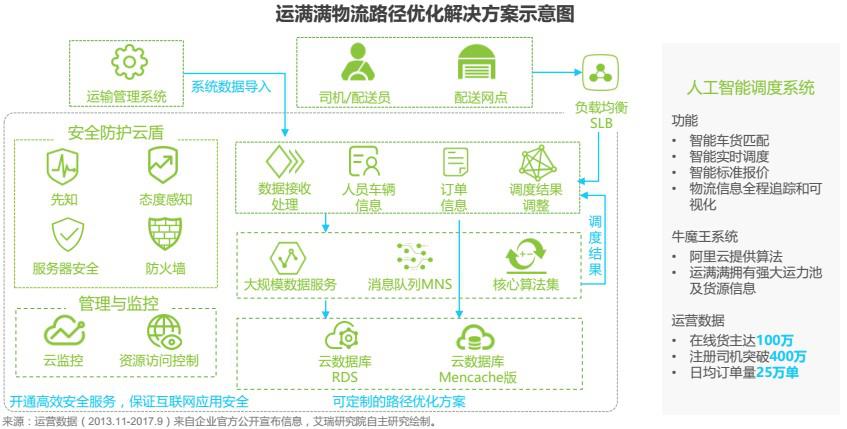 2016年底,運(yùn)滿滿攜手阿里云,發(fā)布了“牛魔王”人工智能調(diào)度系統(tǒng),結(jié)合運(yùn)滿滿的數(shù)據(jù)和用戶場景、以及阿里云的算法團(tuán)隊(duì),共同推動(dòng)干線配貨人工調(diào)度朝著智能化方向推進(jìn)?!芭D酢毕到y(tǒng)是基于云計(jì)算、大數(shù)據(jù)、移動(dòng)互聯(lián)網(wǎng)和人工智能技術(shù)的公路物流領(lǐng)域高新技術(shù)綜合應(yīng)用的典型代表,可以實(shí)現(xiàn)服務(wù)車主與貨主的智能車貨匹配、智能實(shí)時(shí)調(diào)度、智能標(biāo)準(zhǔn)報(bào)價(jià)及對(duì)物流信息全程追蹤和可視化,顯著提升公路干線物流貨源、車輛、路線、價(jià)格匹配速度、精準(zhǔn)度和運(yùn)輸組織效率。