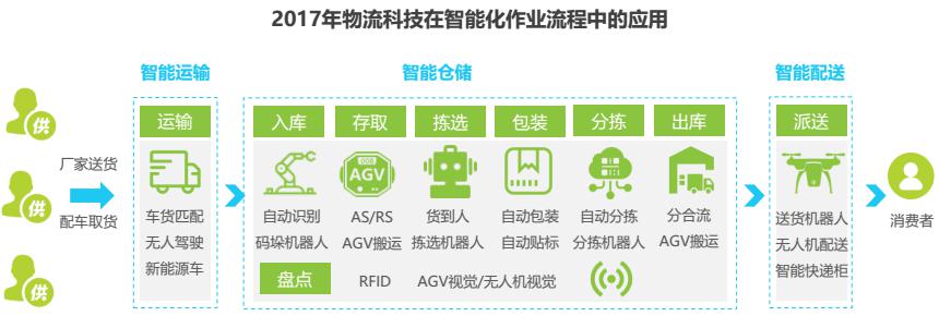 “互聯(lián)網(wǎng)+高效物流”已被列入“互聯(lián)網(wǎng)行動(dòng)計(jì)劃當(dāng)中”。大數(shù)據(jù)、云計(jì)算、物聯(lián)網(wǎng)、人工智能技術(shù)的成熟發(fā)展,可以對(duì)物流各環(huán)節(jié)進(jìn)行信息化、高效率的管理,提高運(yùn)輸、配送效率、減少損耗,并可指導(dǎo)生產(chǎn)制造,為顧客提供更好的服務(wù)體驗(yàn),推動(dòng)物流供應(yīng)鏈智慧化升級(jí)。