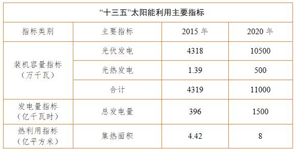 光伏發(fā)電成本持續(xù)降低。到2020年,光伏發(fā)電電價水平在2015年基礎上下降50%以上,在用電側實現(xiàn)平價上網(wǎng)目標;太陽能熱發(fā)電成本低于0.8元/千瓦時;太陽能供暖、工業(yè)供熱具有市場競爭力。
