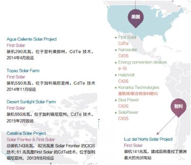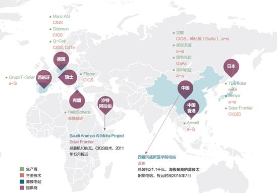 從企業(yè)看,全球薄膜電池產量主要集中在以CdTe電池為代表的FirstSolar,以CIGS電池為代表的SolarFrontier和以硅基薄膜為代表的漢能控股公司。