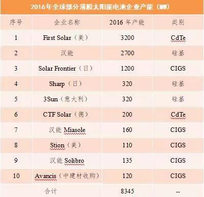 根據(jù)中國產業(yè)信息網(wǎng)資料顯示,3家公司產量約占全球薄膜電池產量的70%。根據(jù)中國光伏行業(yè)協(xié)會數(shù)據(jù)顯示,3家公司2016年產能占全球主要薄膜太陽能電池總產能的80%。
