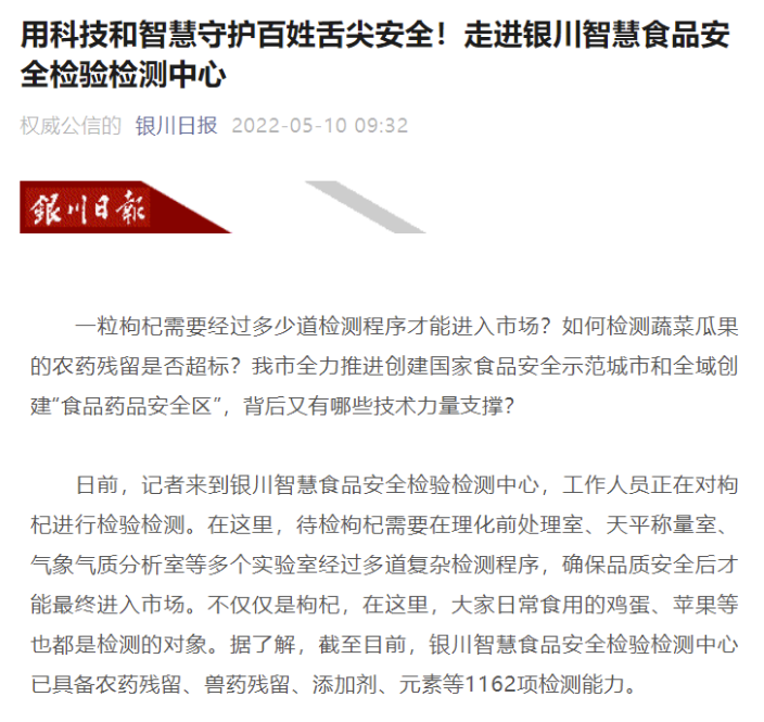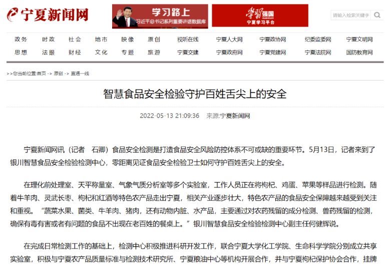 隨著牛羊肉、靈武長棗、枸杞和紅酒等特色農(nóng)產(chǎn)品走出寧夏、相關(guān)產(chǎn)業(yè)逐步壯大,對特色農(nóng)產(chǎn)品的食品安全保障越來越受到關(guān)注和重視。