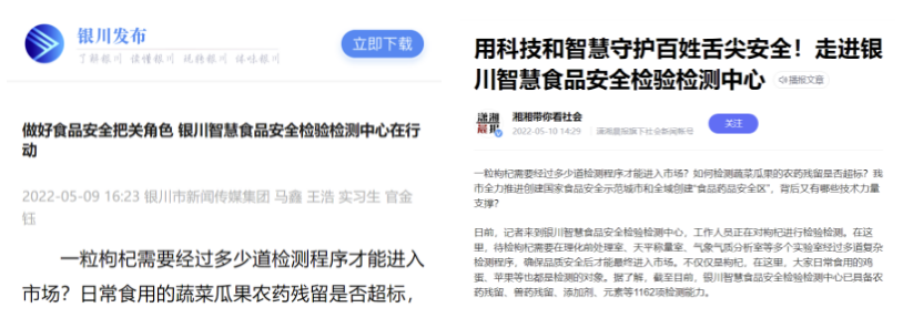 銀川日報(bào)、銀川電視臺(tái)宣傳報(bào)道銀川智慧食品安全檢驗(yàn)檢測中心助力銀川市“兩個(gè)創(chuàng)建”