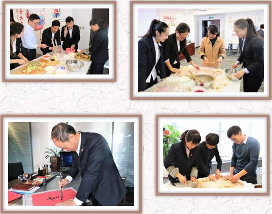 大家分成“愛吃餃子”“會(huì)做餃子”“多彩生活”和“幸?;▋骸彼膫€(gè)組合,展開了包餃子比賽。只見他們熟練的搟面皮、放餡料、捏餃子,十指翻飛之間,剁餡聲、歡笑聲、音樂(lè)聲,交織在一起,每個(gè)人臉上都洋溢著燦爛的笑容,公司里充滿了歡聲笑語(yǔ),匯聚成了一片歡樂(lè)的海洋。